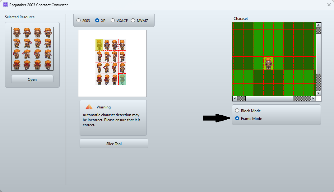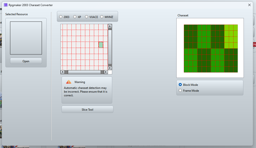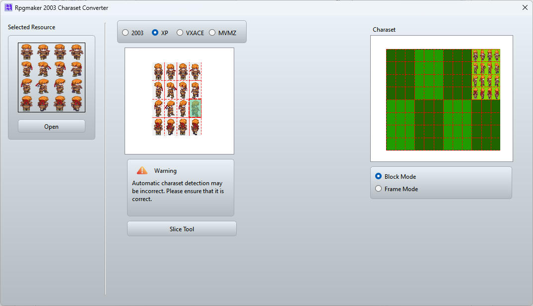 In the first section, for example, I will try to open a special charaset, such as a port of Rpgmaker XP. As you know, a port has a different structure compared to a normal charaset, as do other tools.